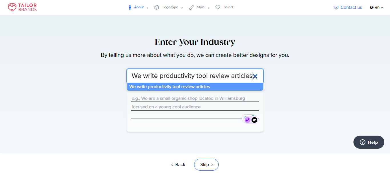 With its AI logo maker, visitors move through a few screens to create their perfect logos.