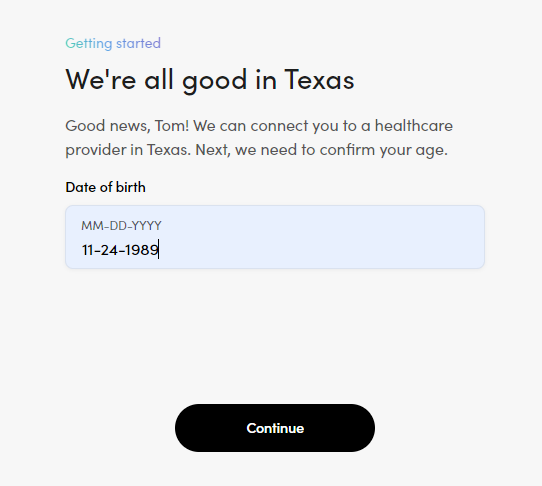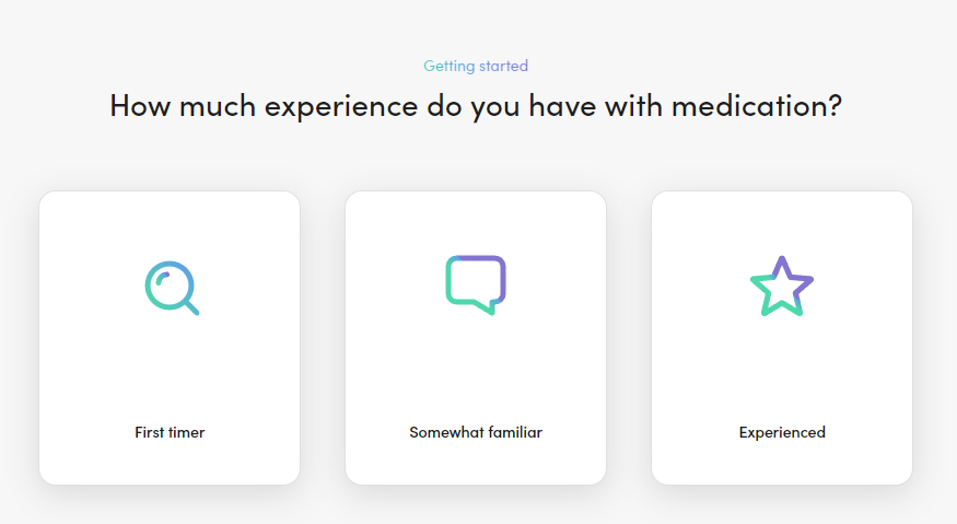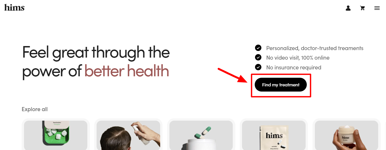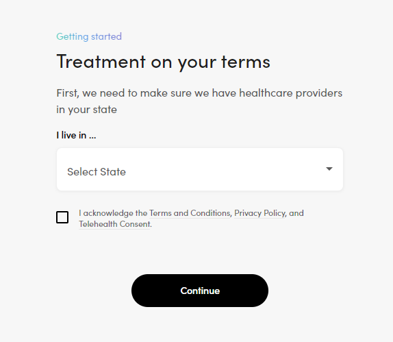 As soon as a user lands on its site, they’ll see a ”Find my treatment” button at the top to help them get started: