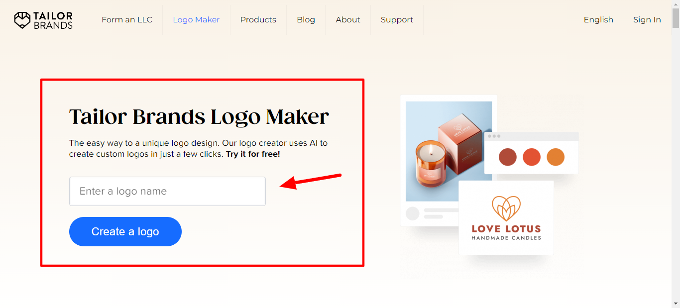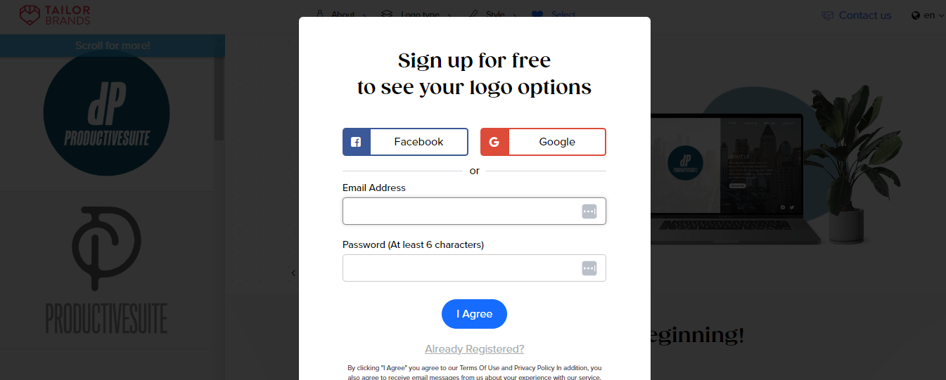 However, if they do leave without signing up, Tailor Brands will remember them if they return. This way, the visitor can pick up where they left off.