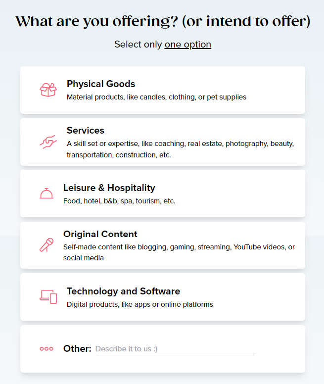 What they offer or intend to offer:
