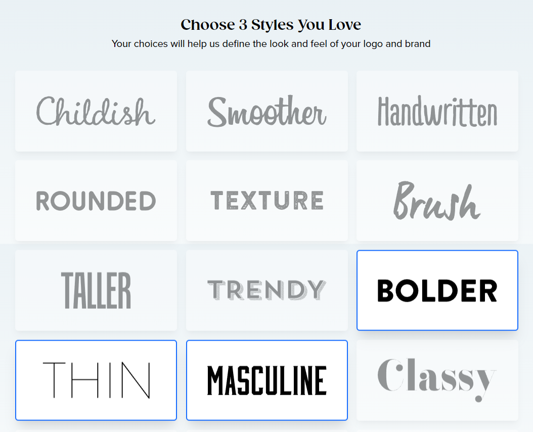 Next, users can choose from a few options to customize their logos.
