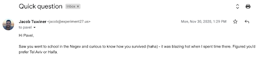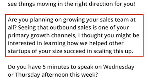 This focuses the direction of the email on to the prospect instead of the product you’re pitching.
