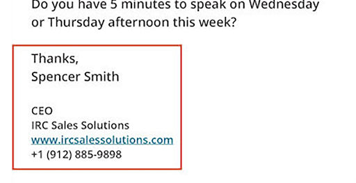 Avoid falling into the branding trap by including a company logo at the end. This is a telltale sign of the email being templated and you want to avoid the email looking like that (even if you are using a template).