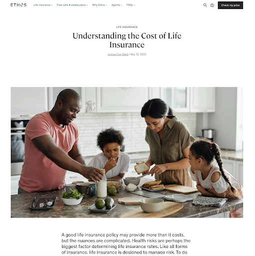 Ethos’ blog is a great example on how to educate the audience on life-insurance product-related topics.