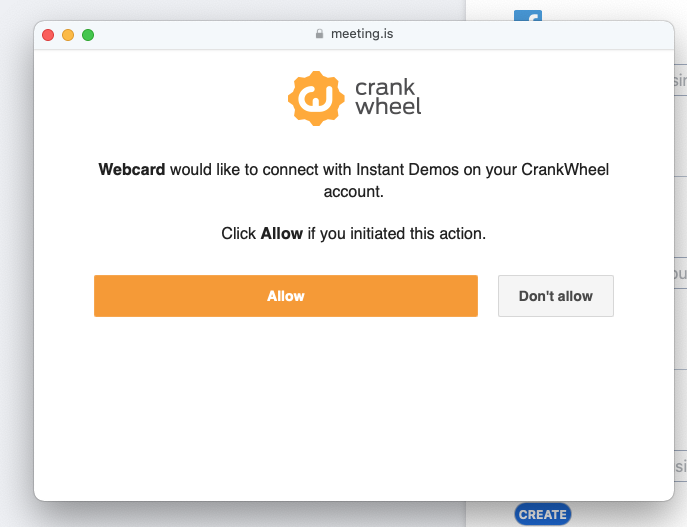 Step 3: Click ALLOW and sign in to your CrankWheel account. If you don’t have an account, you will be offered to sign up, which is free.