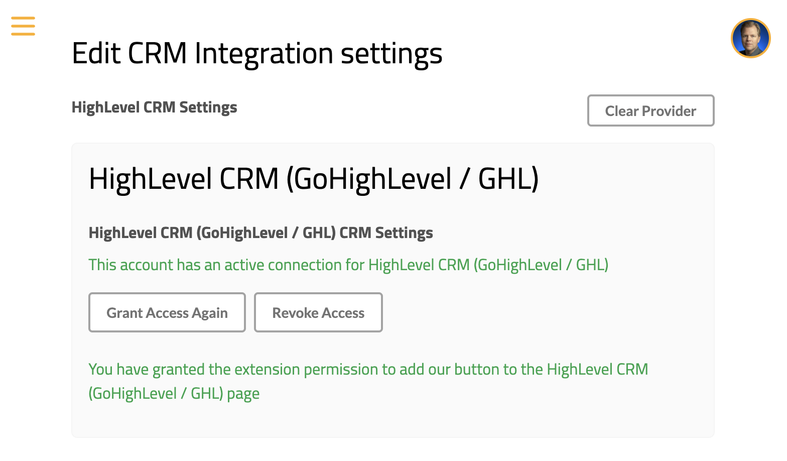 Select “HighLevel CRM” as the CRM provider in the selector.