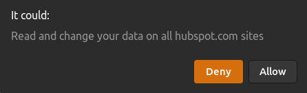 A dialog will open asking you if you want to allow the CrankWheel extension to read or edit pages on hubspot.com. Click Allow to enable the extension.