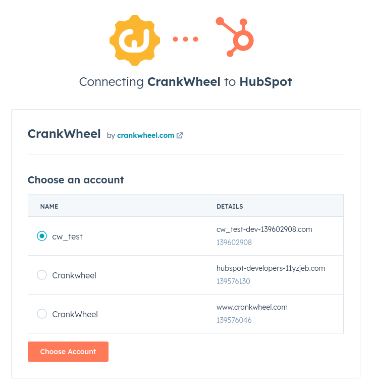 You will then be asked to authorize CrankWheel to access your HubSpot data. Accept and you will be returned to CrankWheel and your integration should now be working.