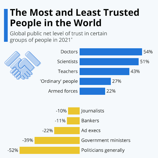 Here’s how trust is distributed among different groups of people, according to Statista: