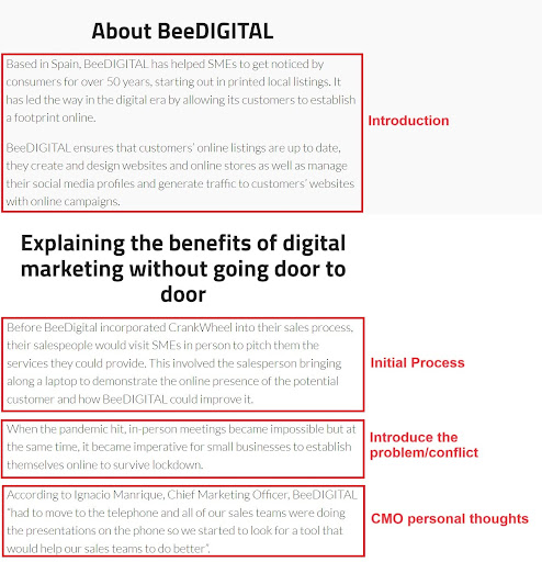 As they establish the issue, they add the customer’s thoughts and experiences to make it more relatable. Here’s how they do it for the BeeDIGITAL case study.