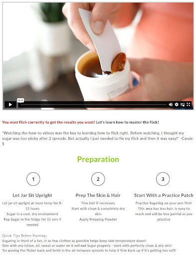 The brand delivers ease of use right off the sugar wax kit product page. They want their potential customers to know how quick and uncomplicated the process is before they purchase the product.